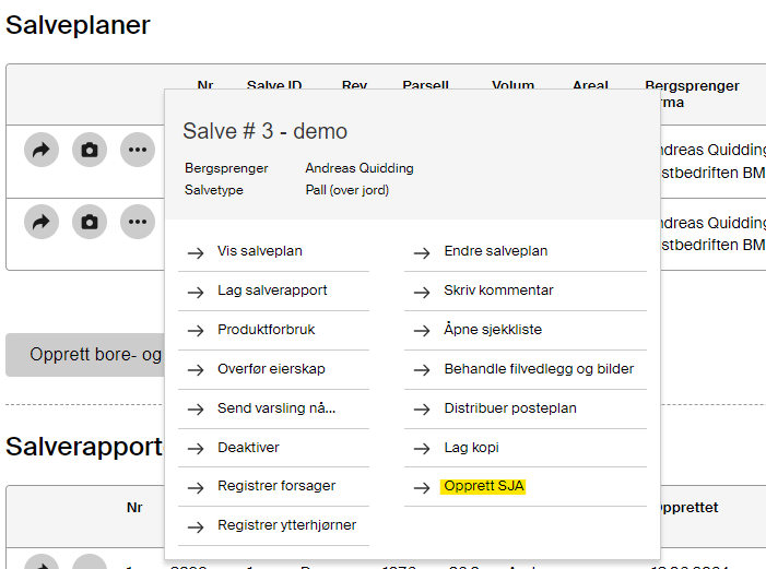 Sikker jobb analyse kan også opprettes vi salveplan ved å trykke på tre-punktsmenyen til den aktuelle salveplanen:
