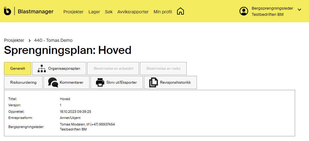 Det er selskapets ansvar å lage en sprengningsplan. I systemet er det bergsprengningsleder som lager disse. Bergsprenger skal på sin side sørge for at det utføres faglige sprengningsarbeider i henhold til sprengningsplanen som er utarbeidet.