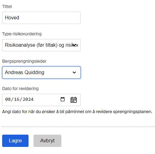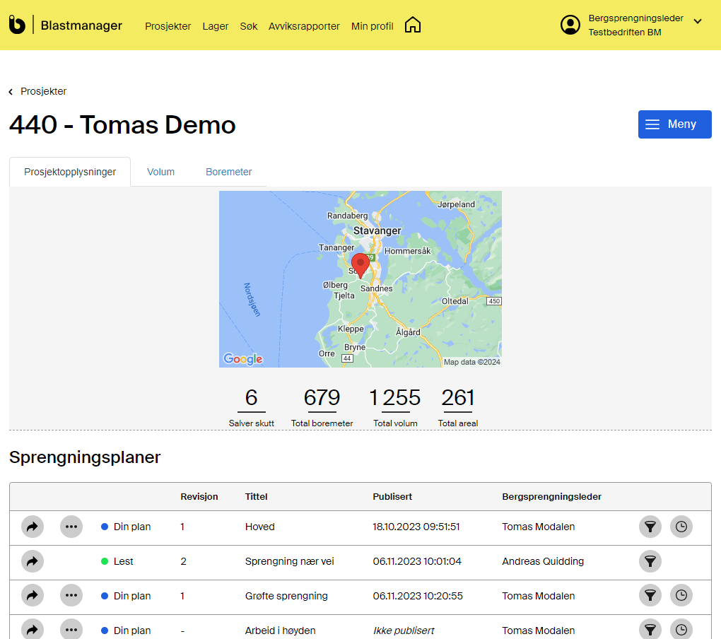 I Blastmanager kan du som bergsprengningsleder lage sprengningsplaner for hvert prosjekt. Du kan lage sprengningsplaner fra bunnen av eller kopiere fra andre prosjekter og justere dem for å passe til gjeldende prosjekt.