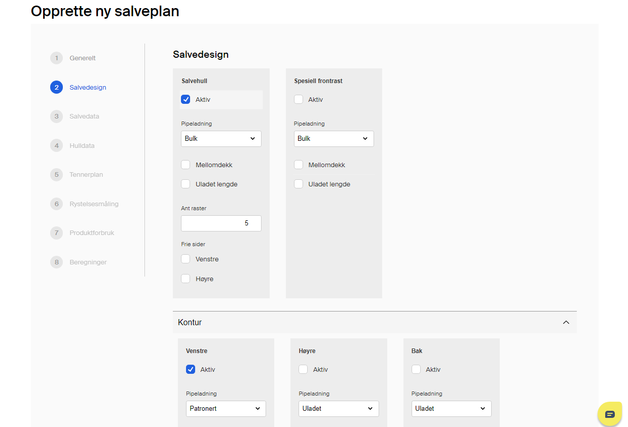 Her fyller du ut feltene i de valgte elementene med de verdiene du planlegger å bruke i salven. Hvert element fylles ut individuelt.