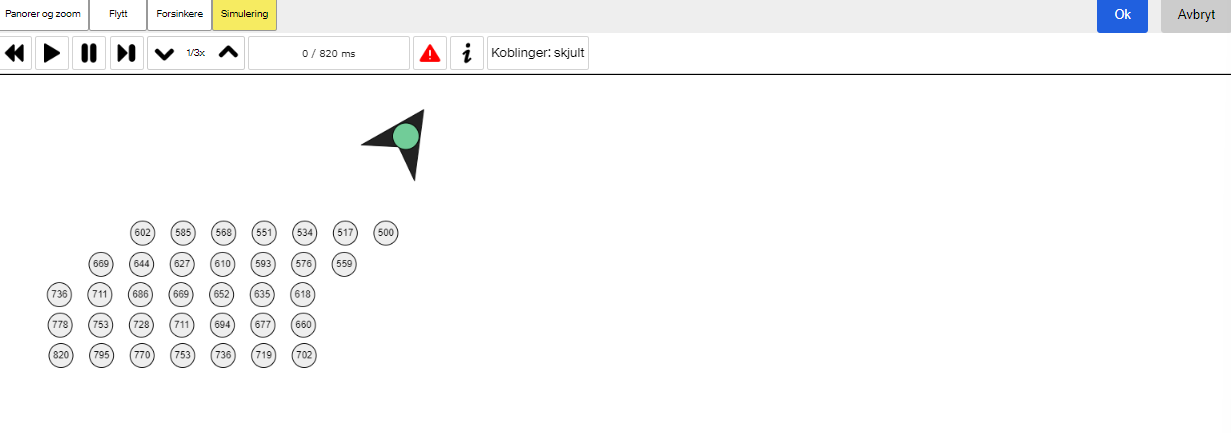 visualiser din tennplan ved å kjøre en simulering av tennerplanen. Her kan du også se forsinkelsestiden på hvert hull.