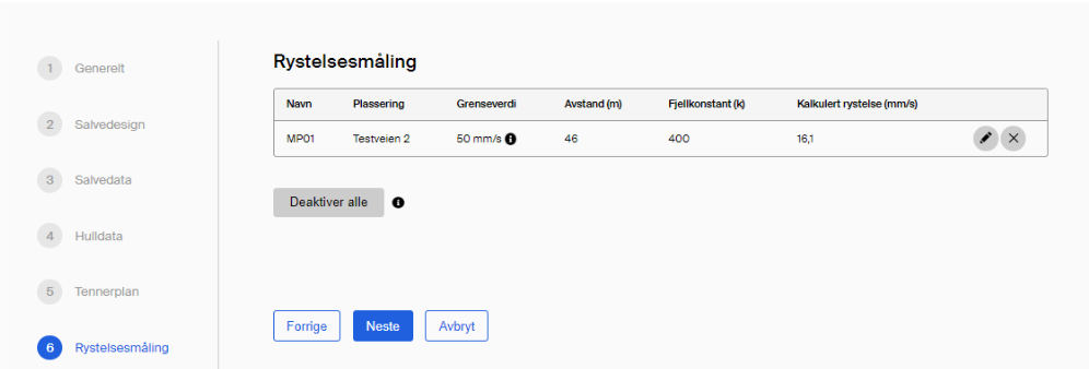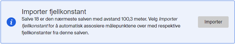 Dersom det allerede er gjennomført sprenginger i prosjektet og salvene er rapportert med tilhørende rystelsesmålinger vil systemet beregne ny fjellkonstant basert på målt rystelse fra den nærmeste salven til målepunktet.