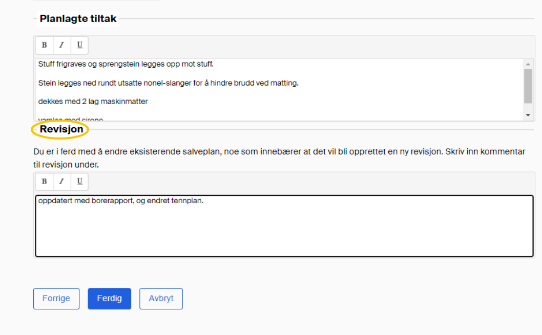 MERK! Før du trykker ferdig, må du fylle ut årsaken til revisjon.