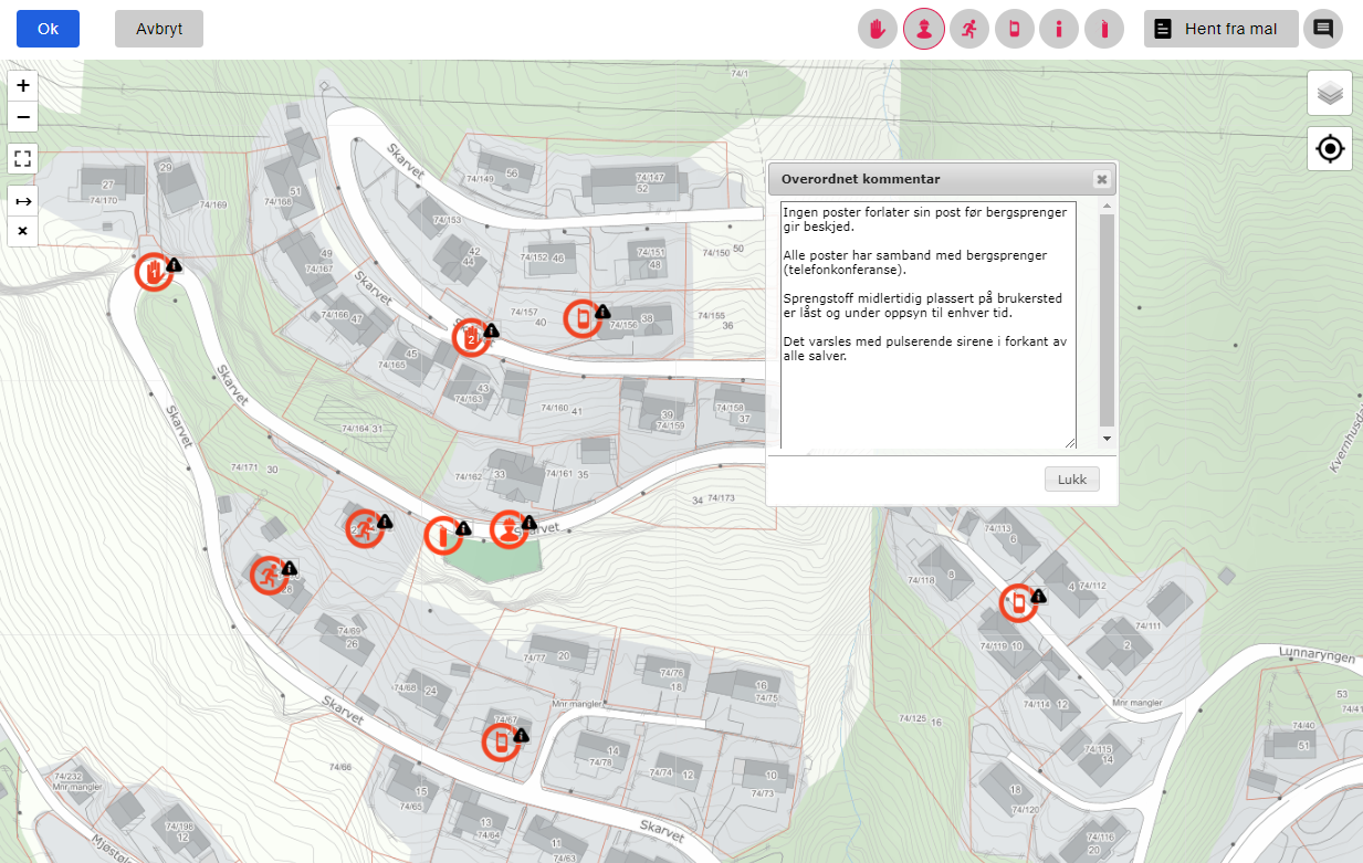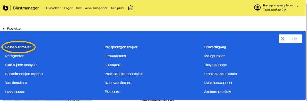 MERK! Det er mulig å opprette flere posteplanmaler i samme prosjekt, og samtlige er tilgjengelig for bergsprenger. Deaktiver de posteplanmaler som ikke lengre er relevante for prosjektet. Endringer i maler påvirker ikke allerede planlagte salver.