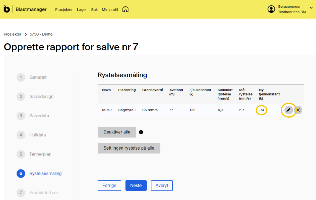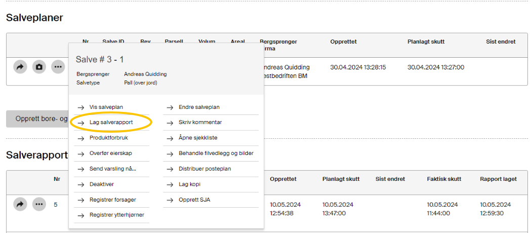 Når du som bergsprenger har laget en salveplan og sprengningen er utført, kan du lage en salverapport. I salverapporten endrer du de verdier slik at avvikelser fra sprengningens faktiske forløp kan dokumenteres.