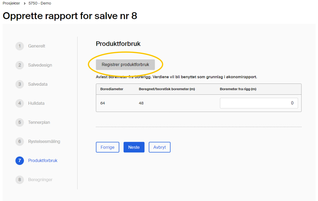 - Følg stegene til du kommer til del 7 Produktforbruk
