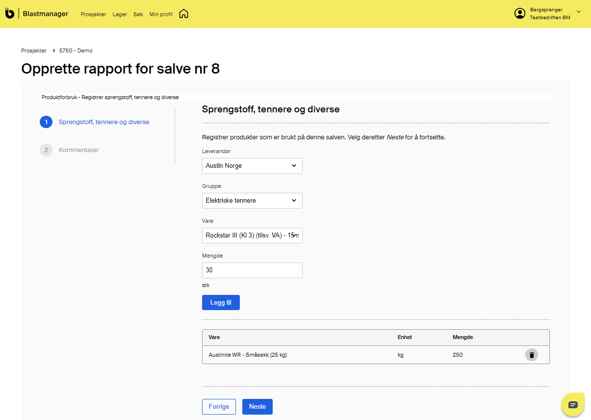 - Som Bergsprenger velger du det aktuelle prosjektet fra prosjektsiden