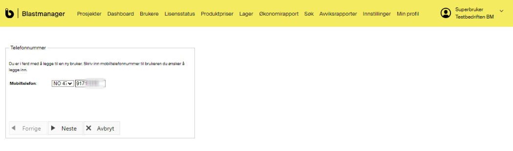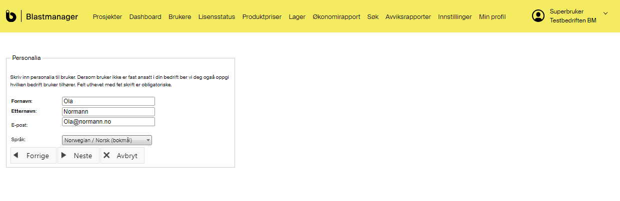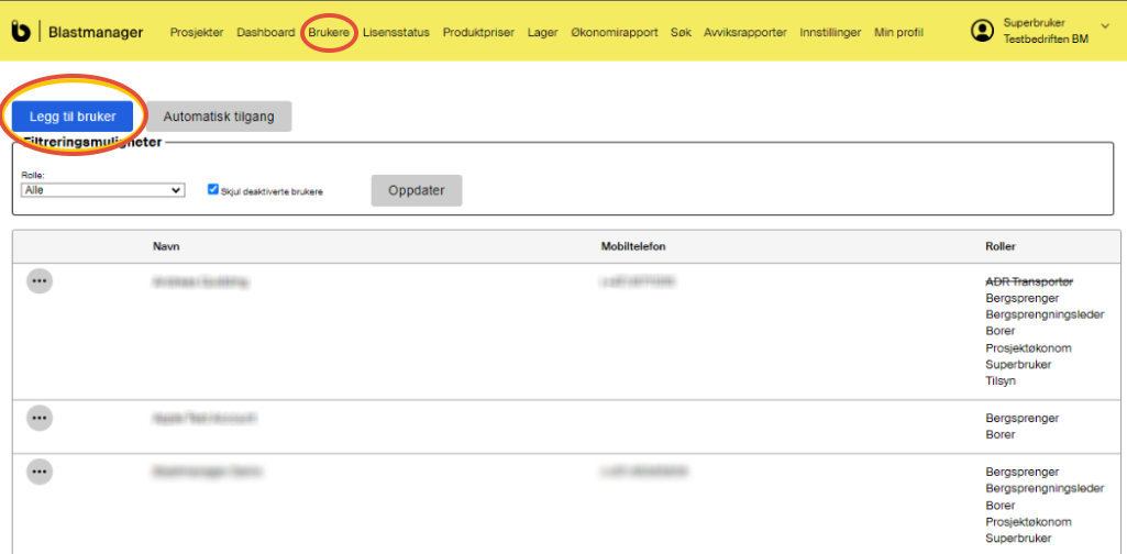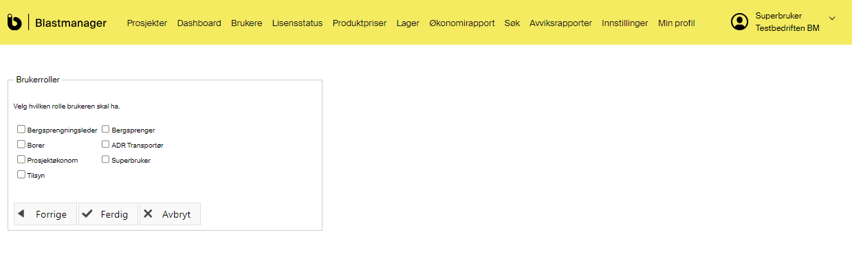 Som Superbruker legger du til brukere fra din bedrift, velger hvem av dem som skal ha tilgang til ulike prosjekter og hvilke roller den enkelte skal ha i hvert prosjekt.