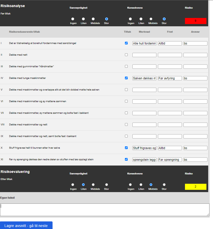6. Etter siste avsnitt velger du lagre avsnitt - ferdig for å fulføre risikovurderingen