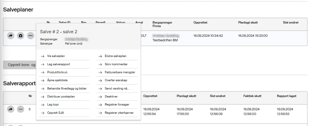 - Trykk på trepunkts menyen på den gjeldene salveplanen