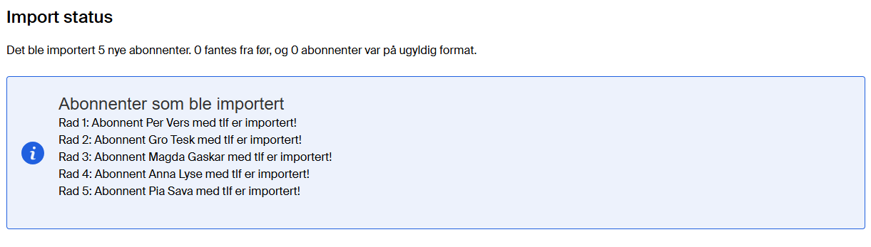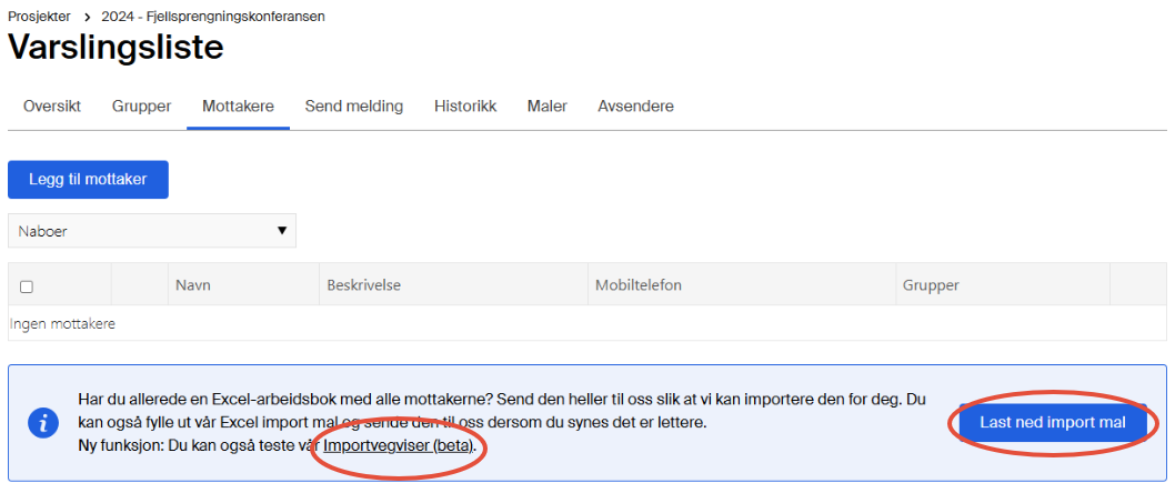 Dersom det er mange kontakter som skal legges til en varslingsgruppe samtidig kan det enkelt lastes opp fra et Excel ark.
