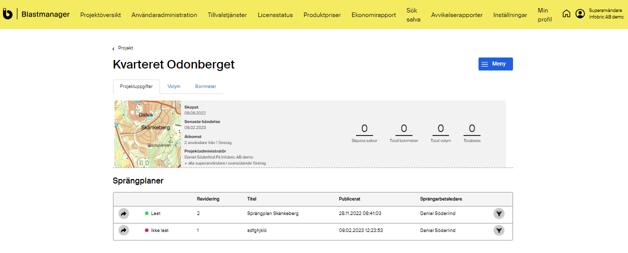 Du hittar sprängplanerna på den huvudsakliga projektsidan. Här ser du om du har läst den, vilken version den har, när den är publicerad och vem som har gjort den. Klicka på pil-ikonen till vänster om sprängplanen för att öppna den.