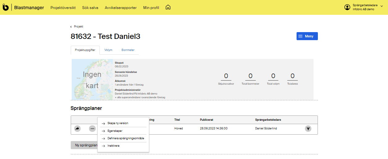 Om du behöver ändra innehållet i en redan existerande sprängplan kan du göra det. Planen kommer då att få ett nytt versionsnummer och status kommer, tills du ändrar innehållet och publicerar denna nya version, att vara under arbete/revision.